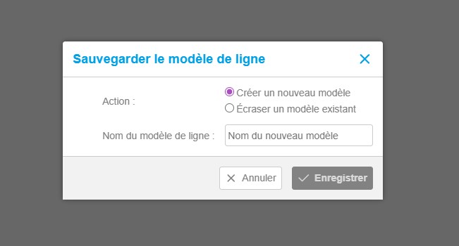Note : Dans « Gérer mes modèles de ligne », l’icône crayon permet de renommer un modèle. L’icône rouge (poubelle) permet de le supprimer.