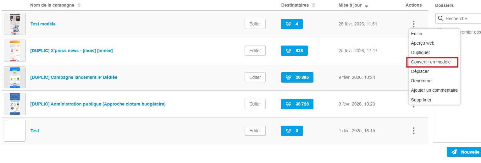 - Confirmez en cliquant sur « Oui, convertir la campagne en template ».