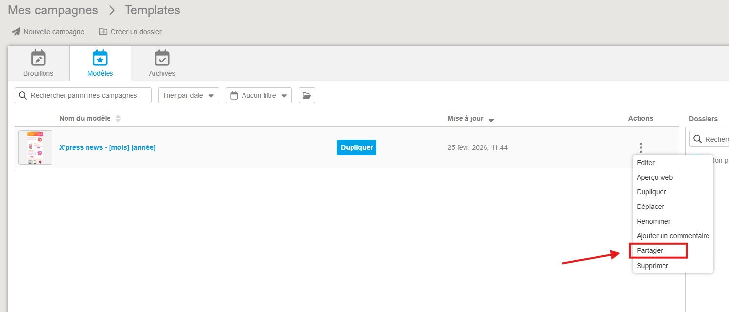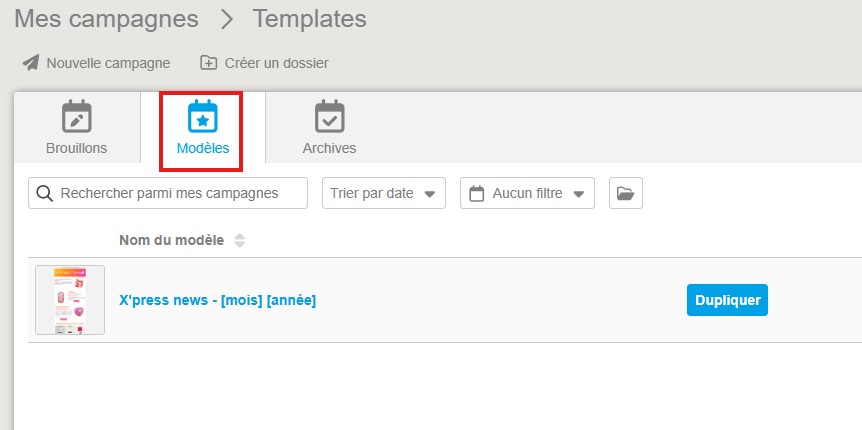Rendez-vous dans la section « Mes campagnes », puis dans l’onglet « Modèles ».